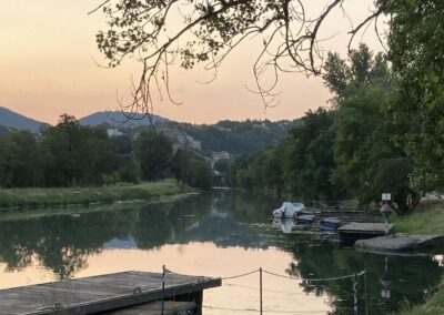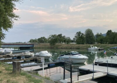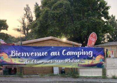 Die französische Autobahn ist wie leergefegt – so schaffen wir es bis Valence. Auf dem kleinen, charmanten Campingplatz Charmes-sur-Rhône bekommen wir spontan einen schönen Platz für eine Nacht. Leider ist das Campingrestaurant La Guinguette bereits ausgebucht.