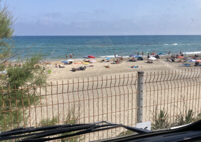 Es ist Hochsommer in Marseillan-Plage – mit Temperaturen bis 38 Grad und Wasser, das kaum noch abkühlt.