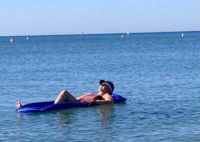 Heute geht’s zum ersten Mal in diesem Jahr ins Meer! Das Wasser ist herrlich warm (27°), sogar Christine wagt sich hinein.