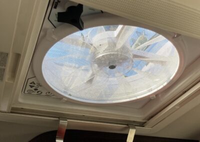 Zum Schlafen bleibt heute die Luke geschlossen. In der Küche läuft der Maxxfan auf 30 % – gerade angenehm für etwas Luftbewegung.