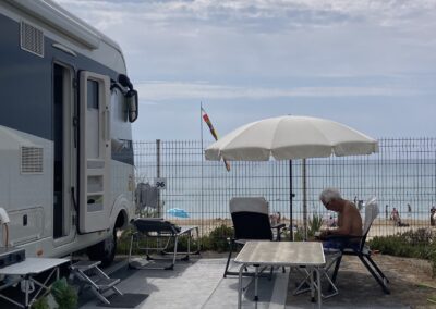 Danach: Teppich-Heringe raus, Teppiche gereinigt und versorgt. Letzter Strandtag – wir geniessen es. Sonnenschirme, Strandstühle, Gaskocher und Campingtisch werden geputzt und im Womo verstaut.