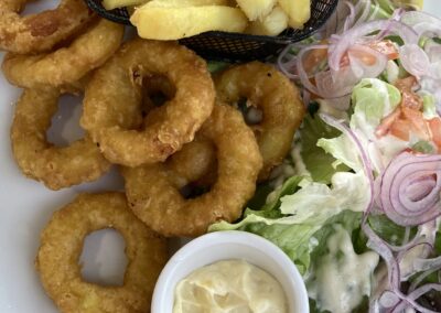 Um 20:00 Abendessen im Campingrestaurant: Für Pulpo und Muscheln mit Curry warten wir über eine Stunde – das Warten lohnt sich.