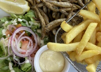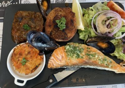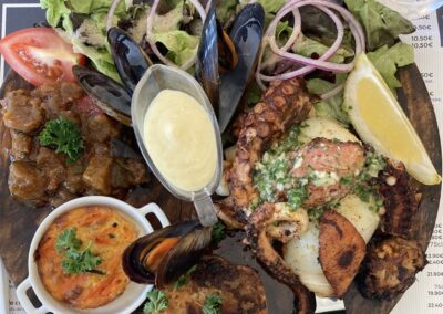 Am Abend essen wir im Les Saveurs Marines: Seiche, Pulpo und Lachs – ausgezeichnet!