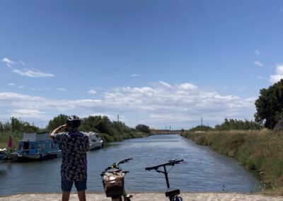 Wir fahren mit dem E-Bike und dem Scooter nach Marseillan zur Maison Noilly Prat, um unsere vorbestellten Flaschen Noilly Prat Ambré abzuholen. Auf dem Rückweg sind wir froh über den Rückenwind – der Mistral hat ordentlich zugelegt.