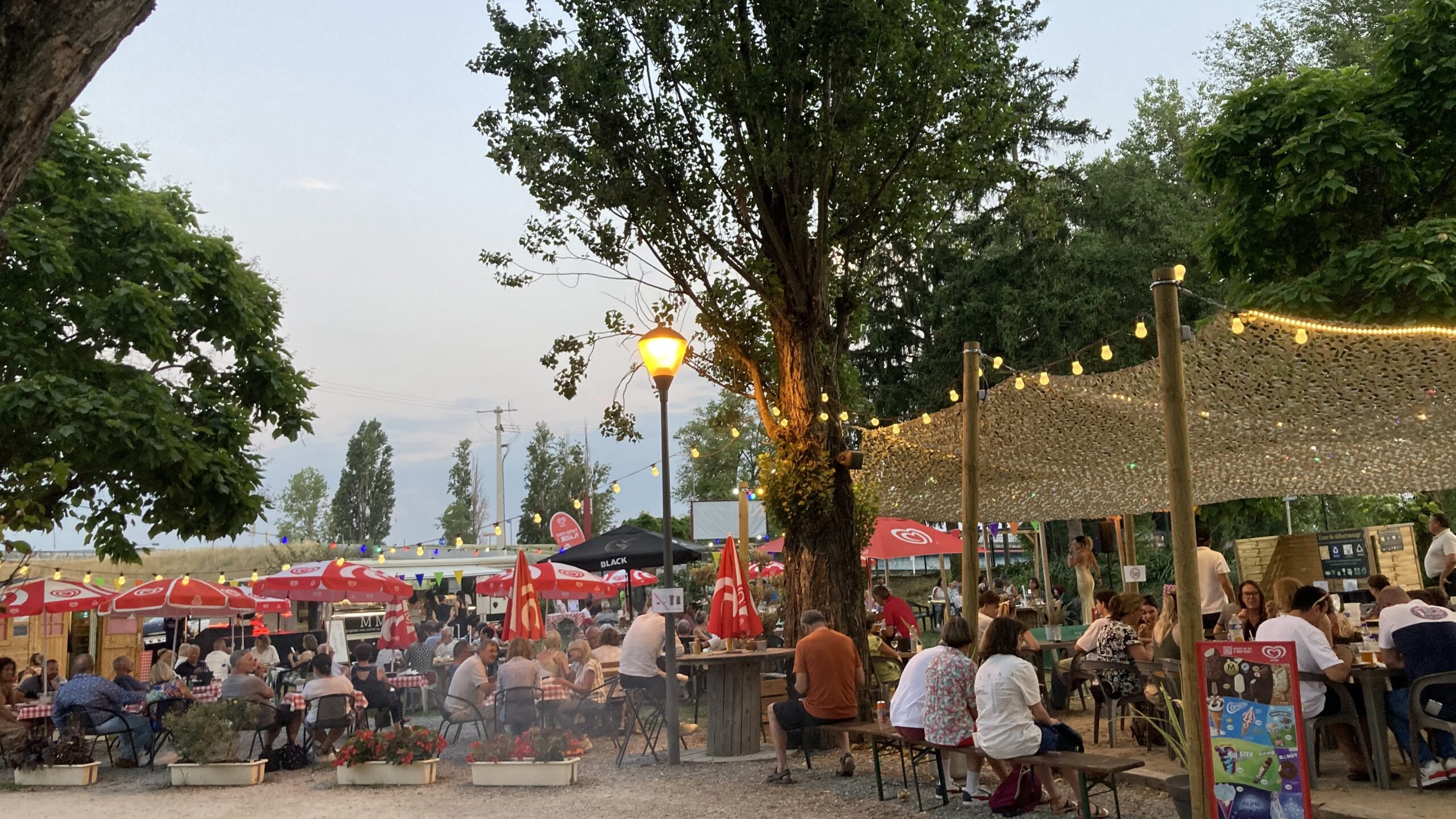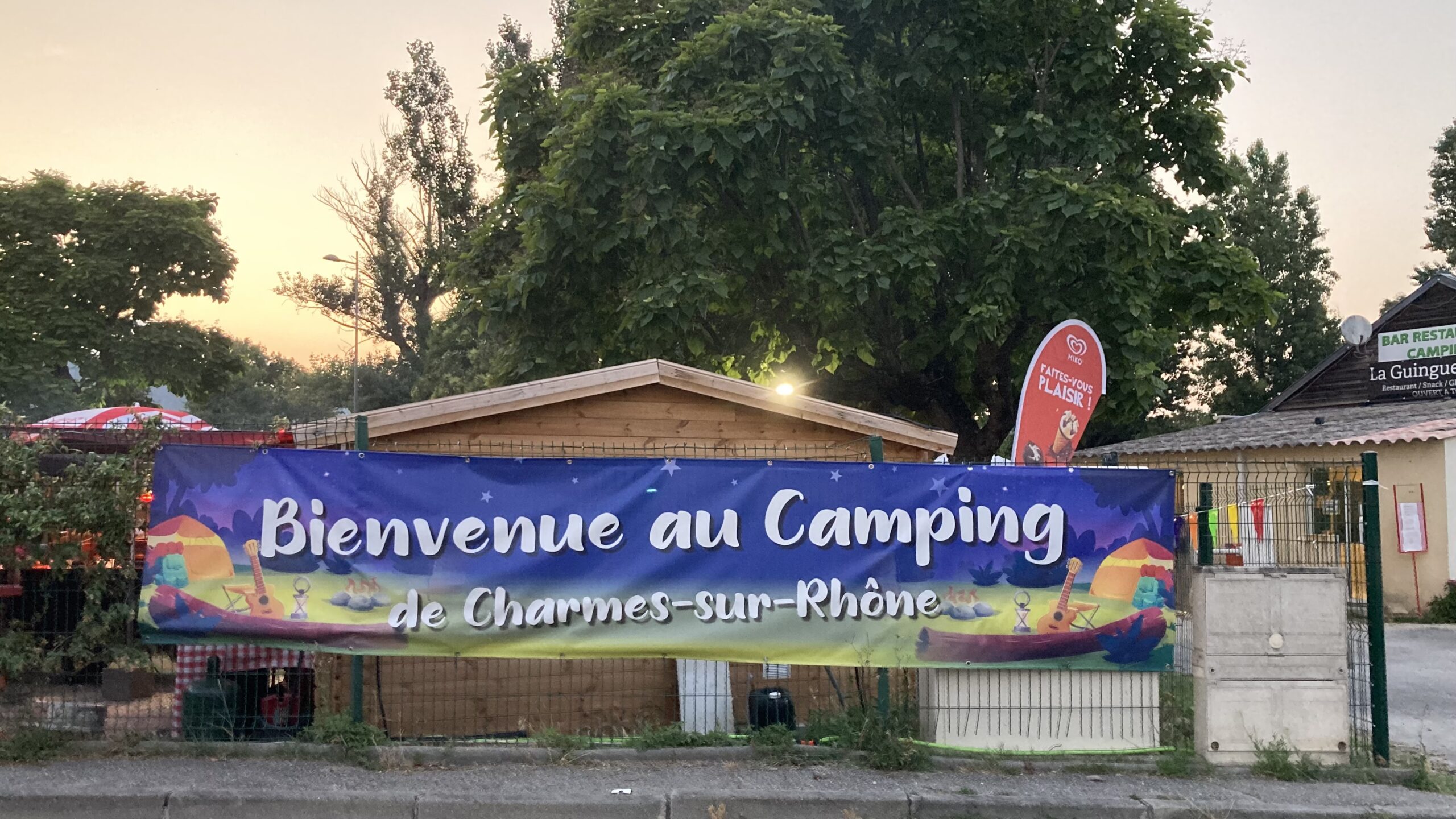Die französische Autobahn ist wie leergefegt – so schaffen wir es bis Valence. Auf dem kleinen, charmanten Campingplatz Charmes-sur-Rhône bekommen wir spontan einen schönen Platz für eine Nacht. Leider ist das Campingrestaurant La Guinguette bereits ausgebucht.