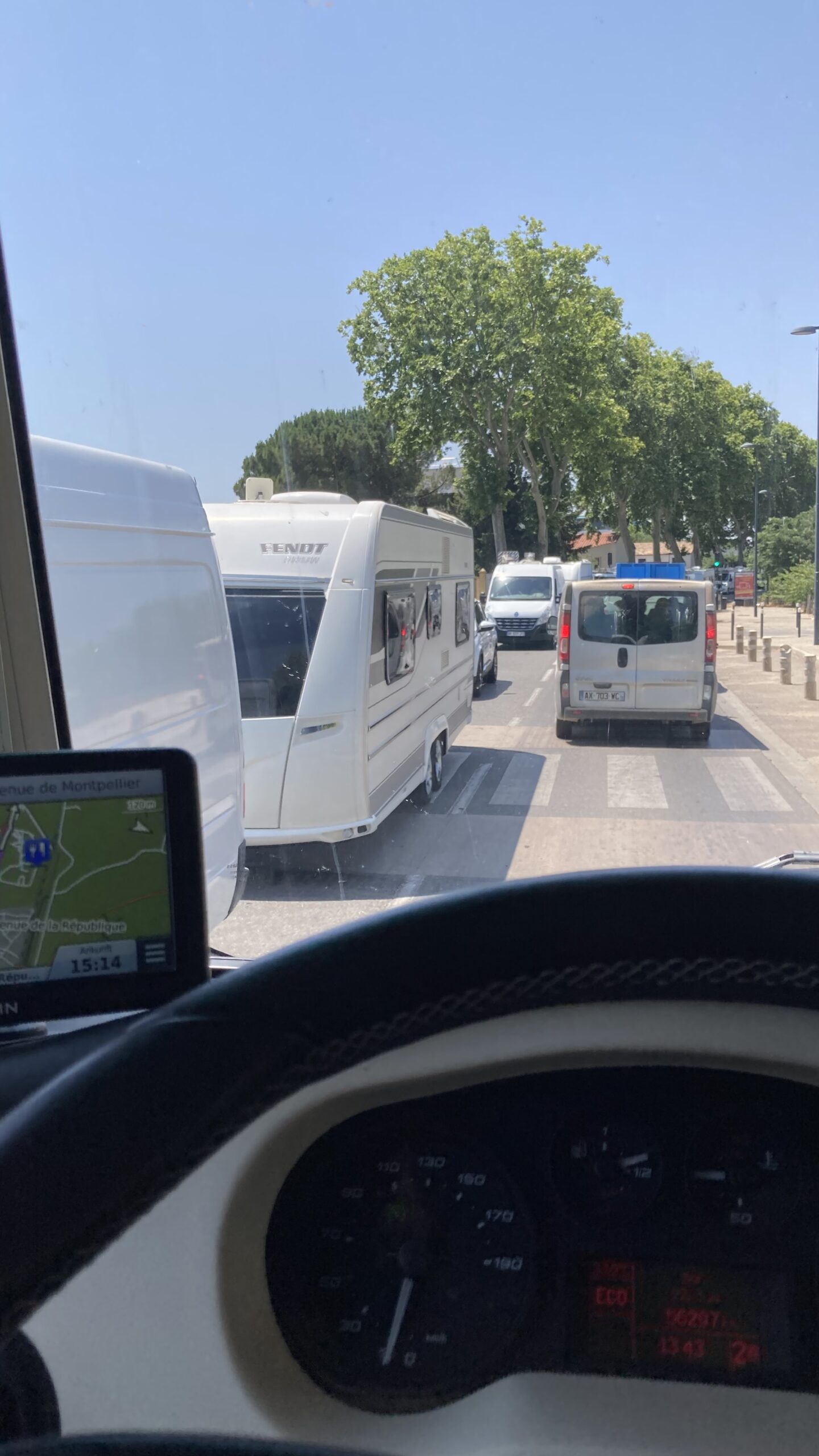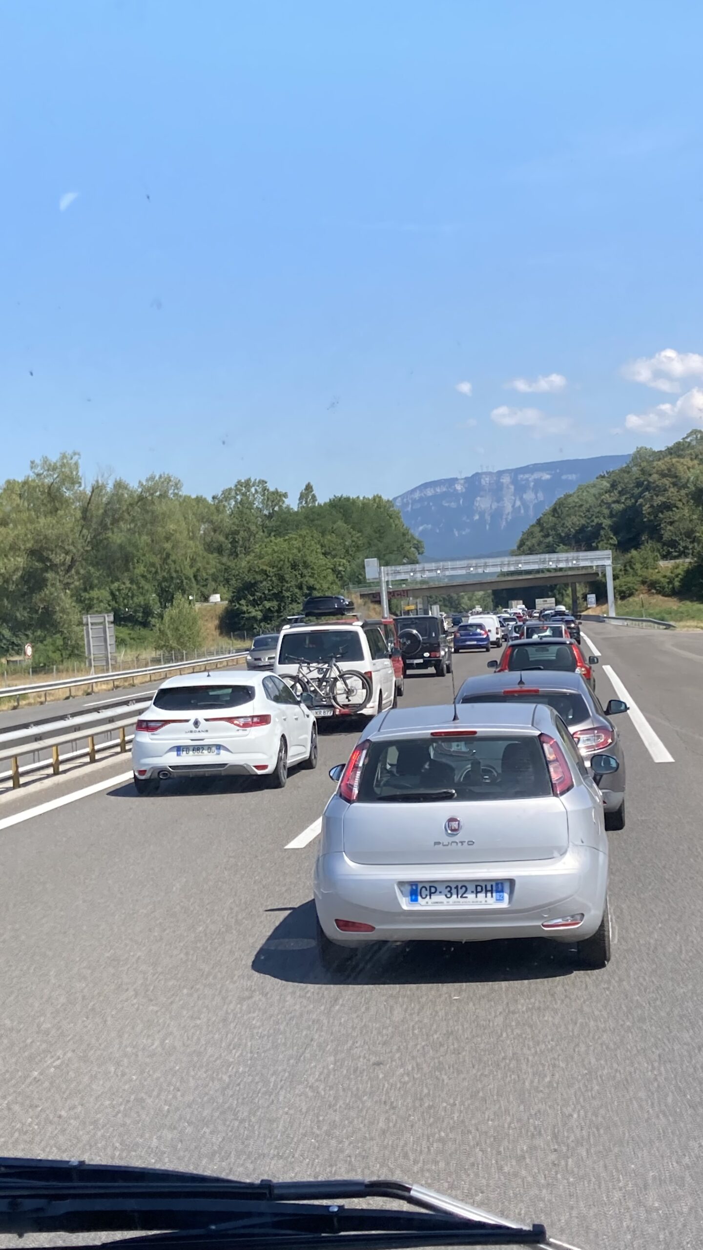 Nach den letzten Vorbereitungen starten wir um 11:00 Uhr Richtung Genf. Die Autobahn ist trotz wenig Lastwagen gut befahren, und es fühlt sich an, als würde man durch eine endlose Baustellenlandschaft fahren. Trotzdem kommen wir zügig voran und lassen den geplanten Zwischenstopp in Neydens (F) aus.