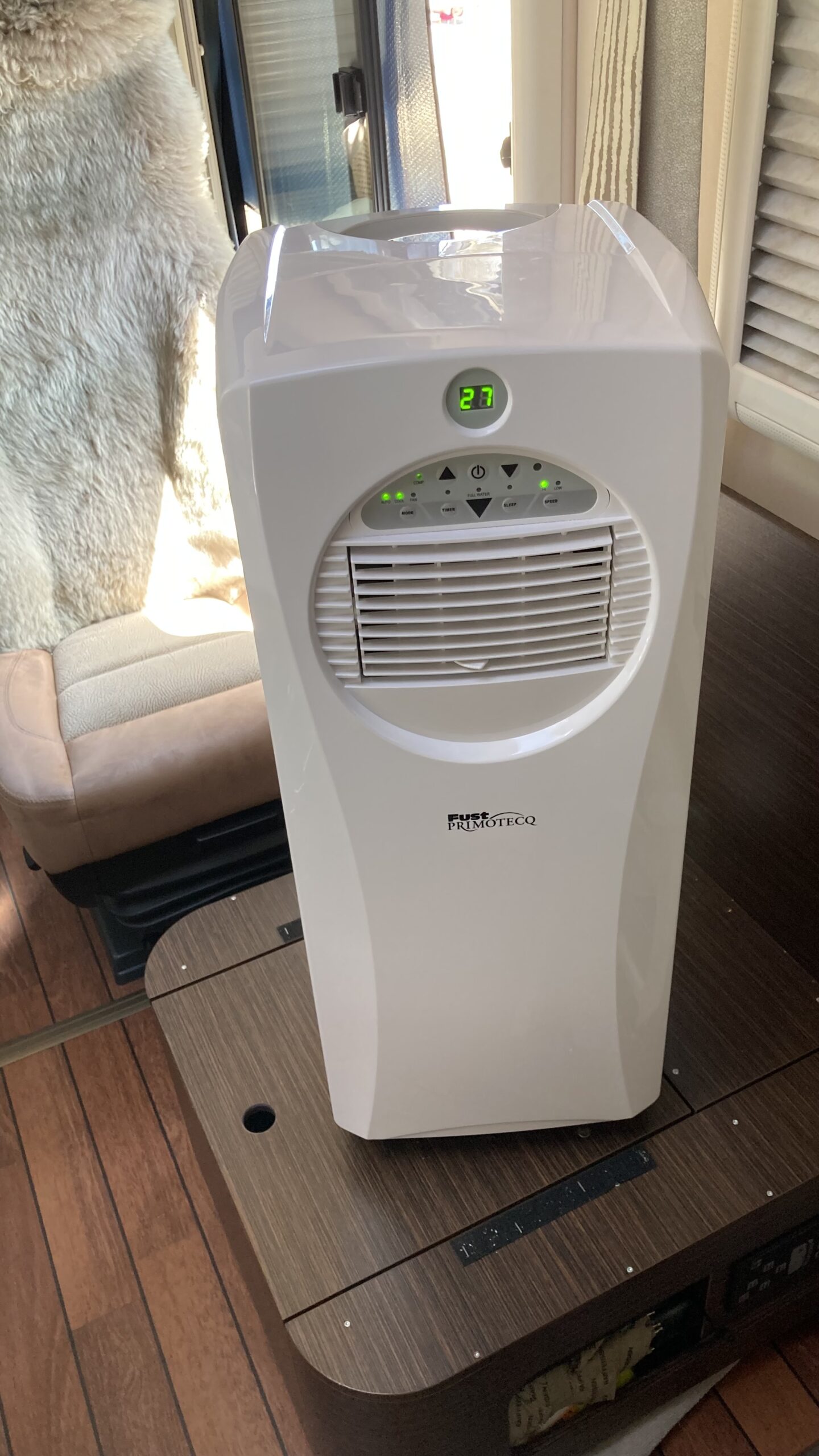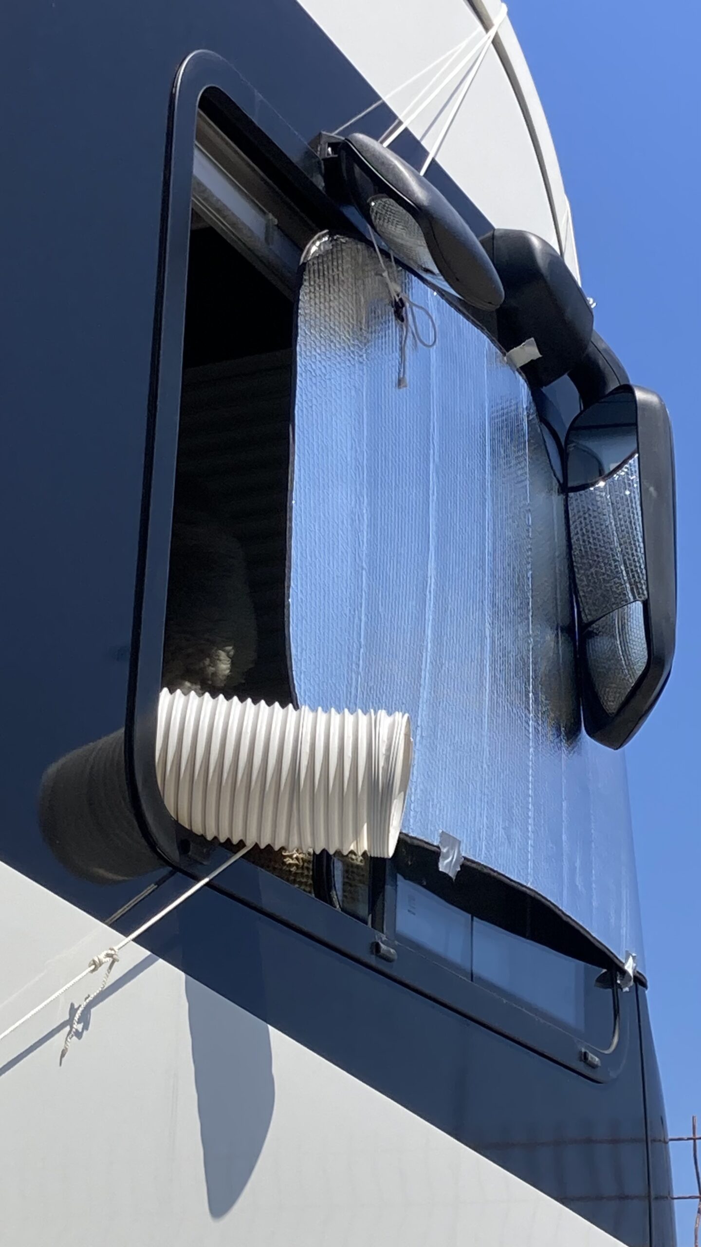 Nach dem Frühstück installieren wir die mobile Klimaanlage – sie läuft einwandfrei.