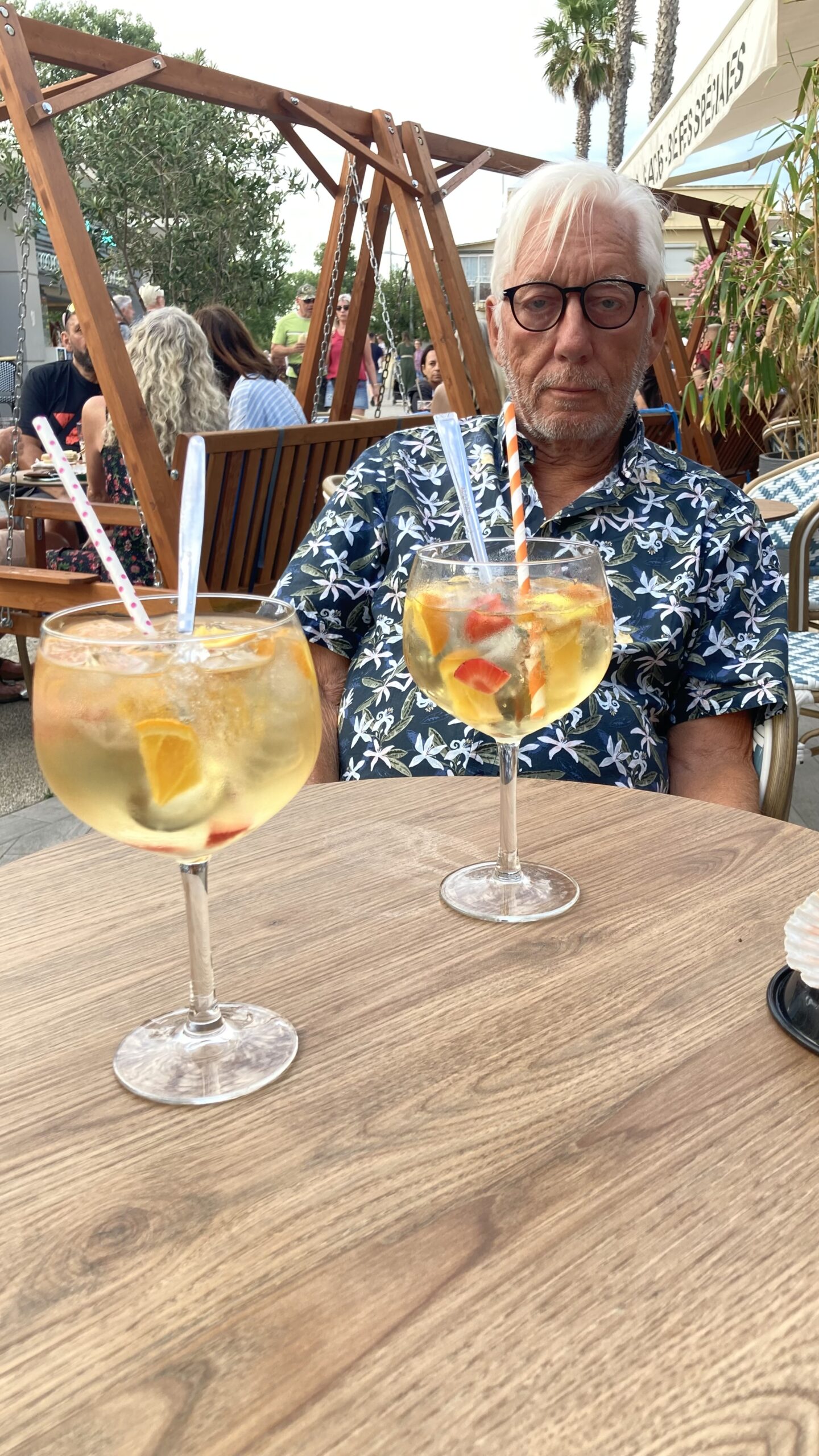 Um 18:10 Uhr beruhigt sich das Wetter – Apéro-Zeit: Campari-Spritz und Aperol-Spritz.