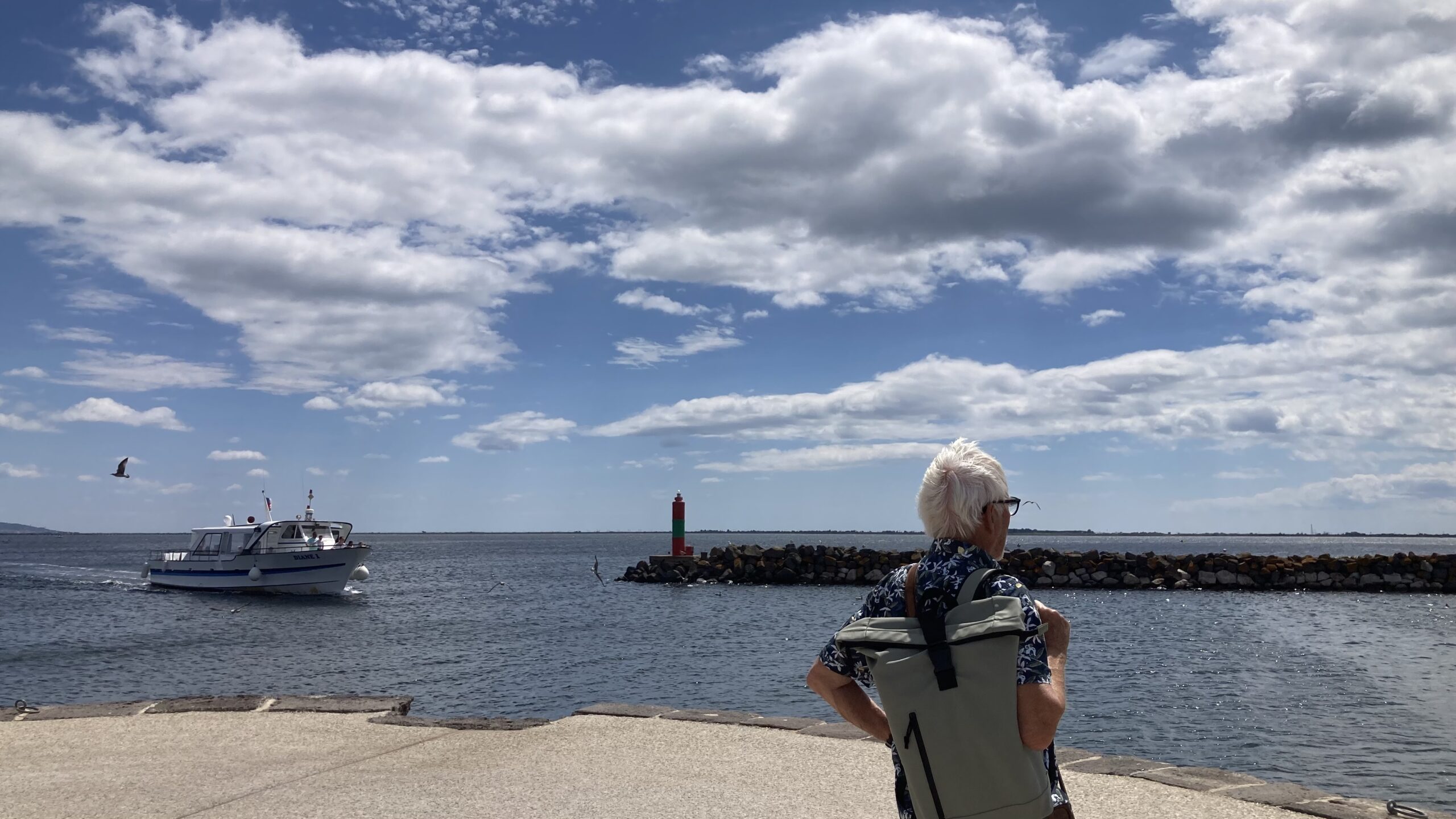 Wir fahren mit dem E-Bike und dem Scooter nach Marseillan zur Maison Noilly Prat, um unsere vorbestellten Flaschen Noilly Prat Ambré abzuholen. Auf dem Rückweg sind wir froh über den Rückenwind – der Mistral hat ordentlich zugelegt.