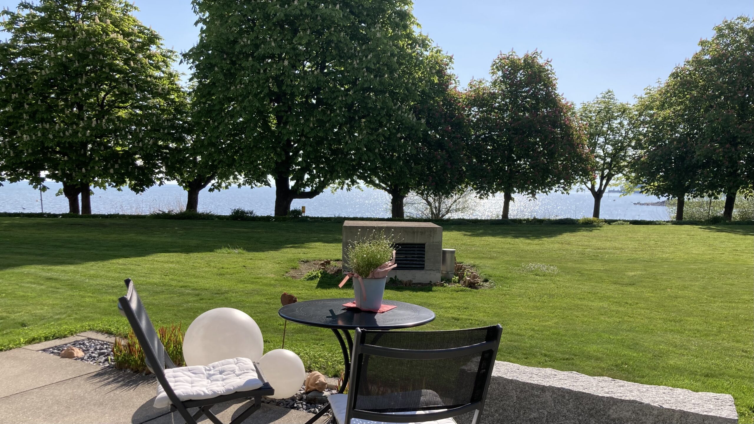 Die Brise vom See ist leider sehr kühl, aber mit Pullover gut auszuhalten, Hauptsache die Sonne scheint. Wir schlendern zum Gelatistand wo Hochbetrieb herrscht (Muttertag).
