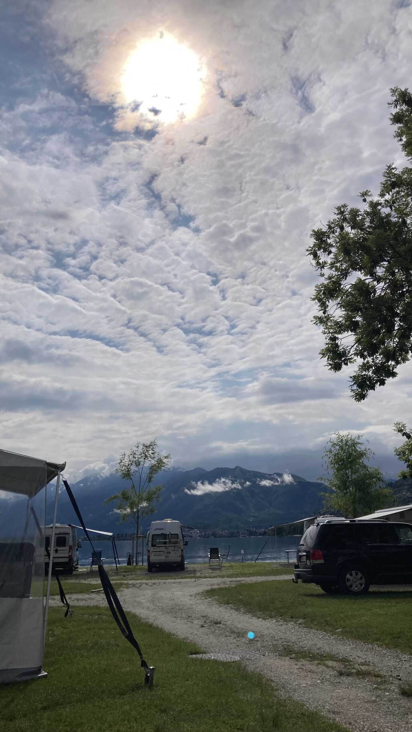Start in Arbon 09.20h, Zwischenstop in Rorschach beim Orthopädischen Geschäft (Ausmessen Schuheinlagen für Jürg). Kafihalt am Werdenbergersee (Magy&Rainer). 11.45h Weiterfahrt über Julier- und Berninapass nach Trevisio im Veltlin. Ankunft 16.00h auf dem Agrocamping (sehr gepflegter Platz mit allem drum und dran). Z’Vieriplättli bei Alex und Alvina Mettler (Segelkollegen). Sie sind vor 1 Jahr nach Italien ausgewandert.